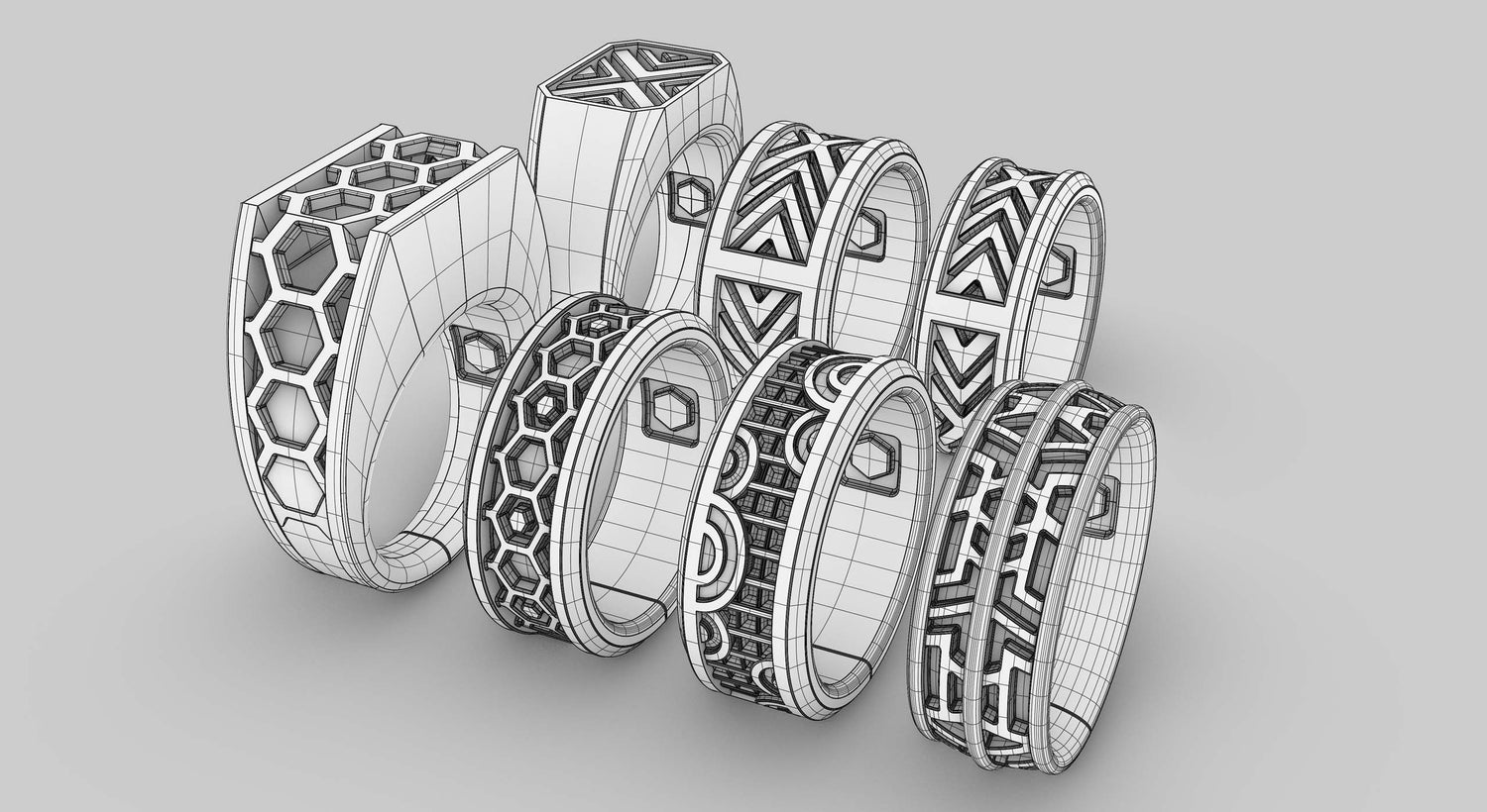 Inspired by the geometry of honeybee hives and paper wasps, the Wexton Band transforms natural precision into a refined, modern form crafted with advanced 3D techniques.